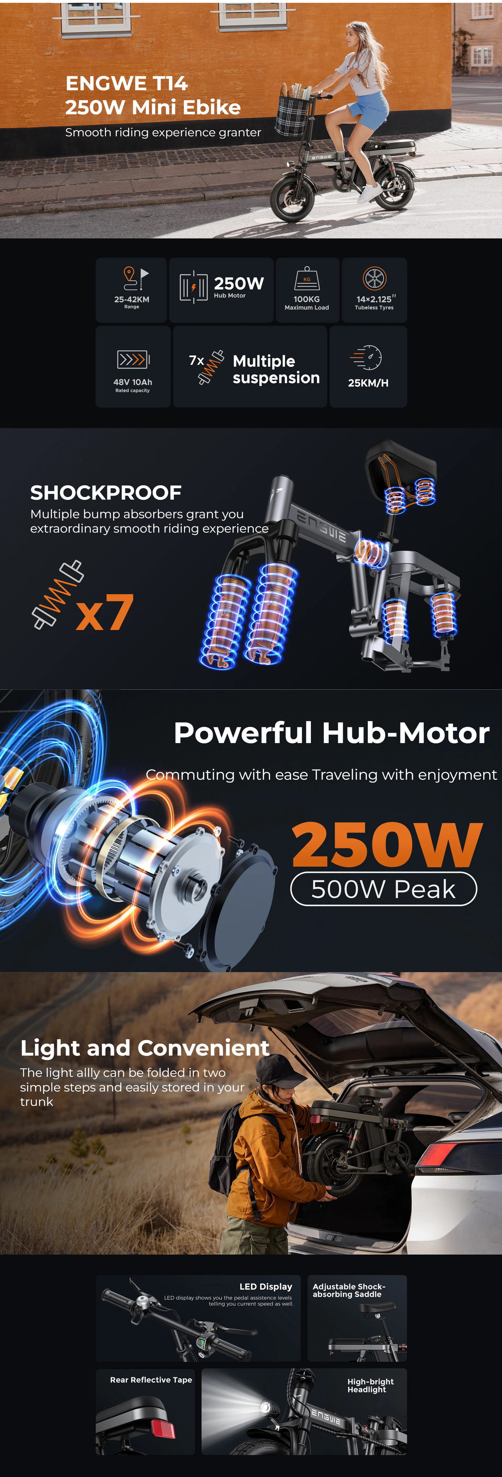 You're viewing: ENGWE T14 250W 55 km Range Max Speed 25 km/h Folding Electric Bike 10Ah 749.00 Inc VAT
